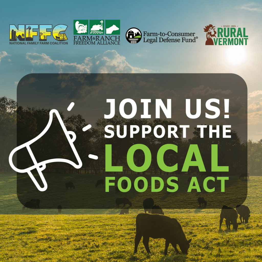 We’ve teamed up with the National Family Farm Coalition, Rural Vermont, and the Farm and Ranch Freedom Alliance to advocate for the LOCAL FOODS Act, which benefits independent livestock producers, consumers, and rural economies. Read on to learn more about this important legislation or click below to take action now. TAKE ACTION What Is the […]