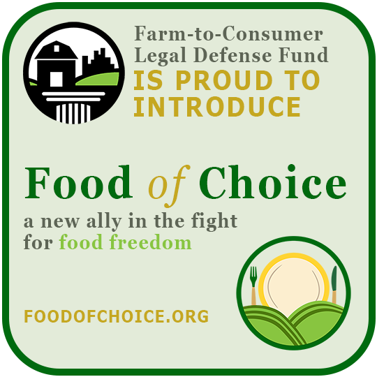 We are particularly excited to work with our new partner 501(c)(3) nonprofit Food of Choice, Inc: formed to protect the fundamental rights of individuals and communities to grow, raise, produce, prepare, and share the foods they choose. Food of Choice will focus on education and funding public interest litigation. Sign up to stay in the loop!